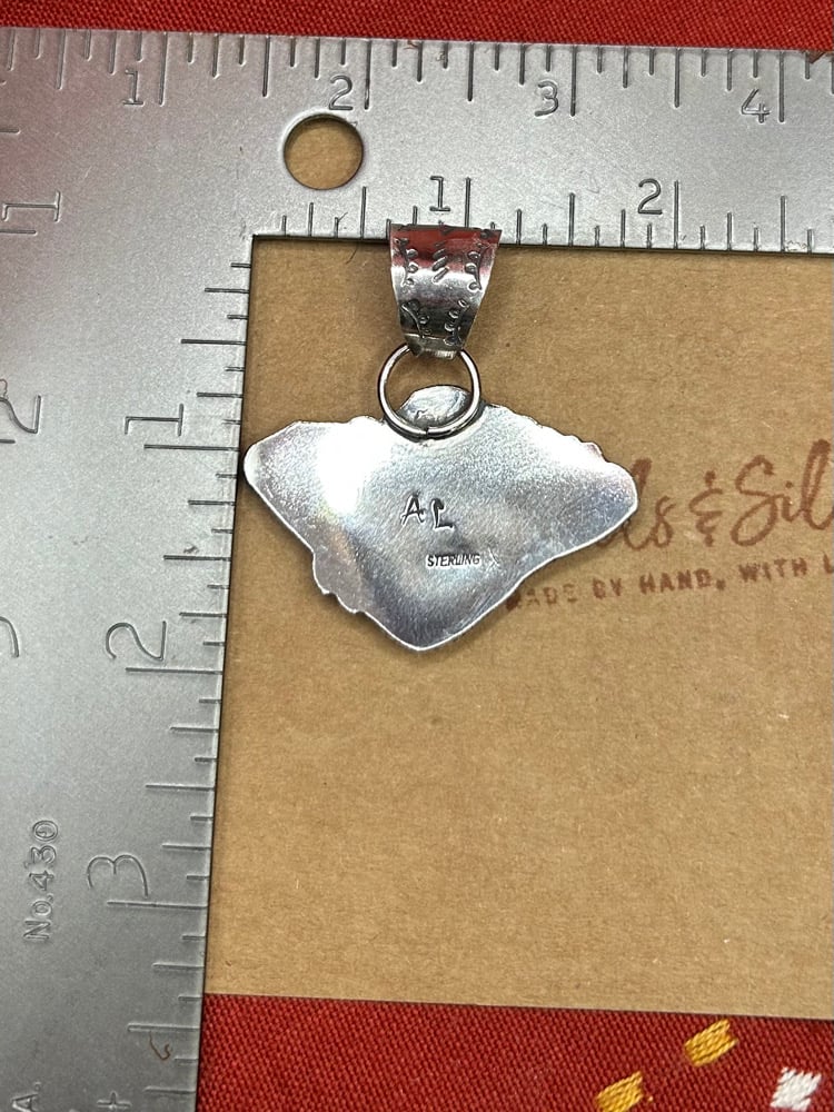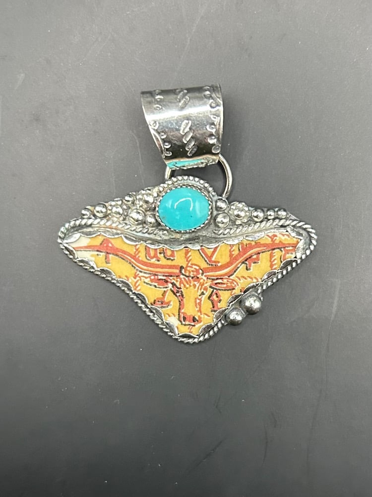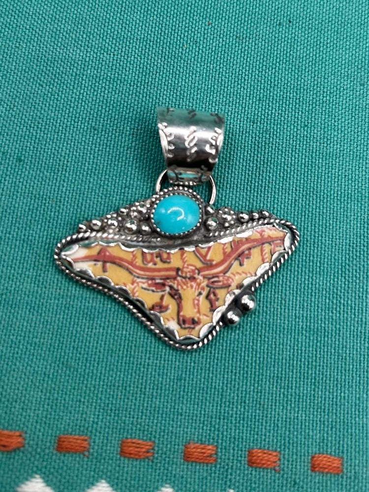 Ceramic Longhorn set in all sterling with fine silver bezel. Fits up to a 10mm bail.